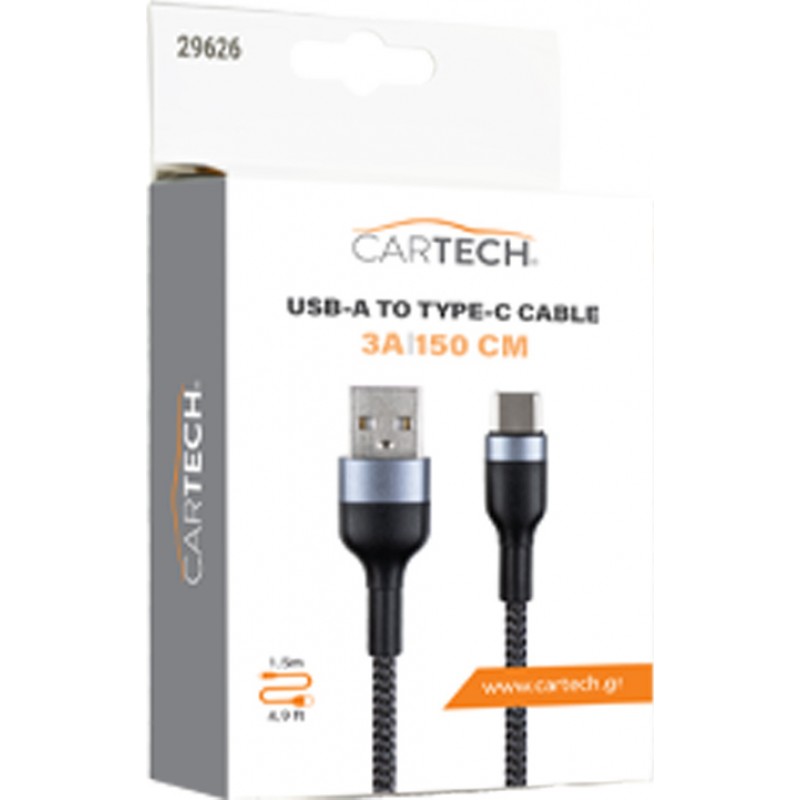 CARTECH ΚΑΛΩΔΙΟ ΦΟΡΤΙΣΗΣ & ΜΕΤΑΦΟΡΑΣ ΔΕΔΟΜΕΝΩΝ USB TO TYPE-C 1.5M NYLON+ZINC ALLOY / 29626